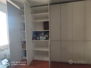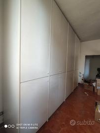 Vendesi armadio 7 ante laminato bianco in buone condizioni, non divisibile; misure: larghezza 330 cm, lunghezza/profondità 60 cm, altezza 260 cm, larghezza anta estrema sinistra come da foto 65 cm, le altre ante 47 cm, naturalmente i libri contenuti internamente non sono compresi, le foto sono per vedere l'altezza dei ripiani, in ogni caso regolabili, possibilità di composizione in 6 ante, armadio fatto a moduli. Ritiro o consegna da concordare con il cliente.