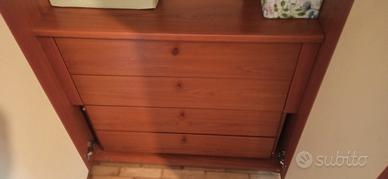 armadio in ciliegio con ante panna, misure 360 larghezza, 262 altezza, 56 profondità. cassettiera e ripiani compresi. composto da quattro sezioni da 90. bello. tre sezioni sono già smontate.