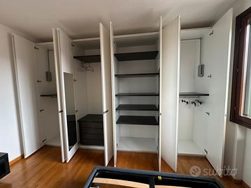 Armadio 8 ante in ottimo stato colore bianco effetto legno interno mogano dotato di appendiabiti saliscendi.Smontaggio e trasporto a carico acquirente