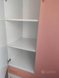 Armadio per cameretta con 2 ante e 4 cassetti bianco/rosa.