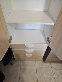 mobile cameretta bimbo ikea, 3 cassetti di cui uno più grande. interno antine regolabile in altezza come meglio si preferisce xon due ripiani e il bastone per appendere .