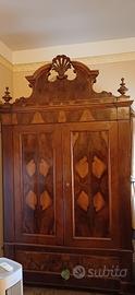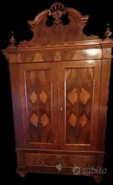 Bellissimo armadio lastronato in noce a 2 ante con cassetto risalente al 1800 in perfette condizioni e realizzato da una mano raffinatissima.