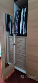 La prima anta dell'armadio contiene 6 cassetti e appendi camicie.