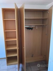 Vendiamo armadio 3 ante con palo porta appendiabiti, 2 ripiani grandi, 5 ripiani piccoli.