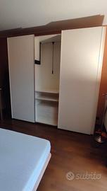 Armadio a 3 ante scorrevoli, in legno colore bianco, dotato di accessori e cassetti. Dimensioni 270x260x60 cm. Vendo a 180 €