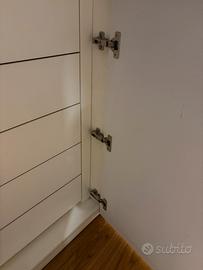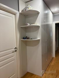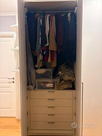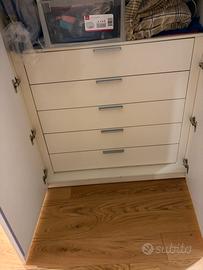 Armadio di cm 260x200 con 4 ante battenti + libreria ad angolo, laccato bianco lucido con cassettiera interna dotata di 5 casseti altezza 15cm ciascuno. Bellissimo. Affare