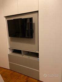 Vendo ampio ed elegante armadio “Sangiacomo” con vano TV di colore bianco e grigio.