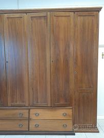 Armadio a sei ante battenti con quattro cassetti sporgenti nella parte inferiore, chiusura con chiave realizzato in legno noce massello. Stile arte povera. L'articolo è un usato in ottimo stato che potrebbe presentare piccoli segni dovuti al tempo e all'uso. MISURE: