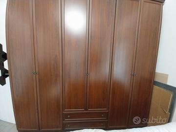 Armadio a sei ante color noce con due cassetti con ripiani interni da posizionare a proprio piacimento. Smontaggio e ritiro a carico dell'acquirente.
