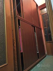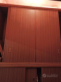 Armadio a 6 ante scorrevoli su due livelli in trucialare impiallacciato. Misure: Larghezza 182 cm, Altezza 285 cm, Profondità 60 cm. Al livello superiore è possibile montare i 6 piani (inclusi), due per anta.