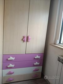 armadio a due ante con appendiabiti e ripiano interno e cassettiera smontaggio e trasporto a carico dell' acquirente