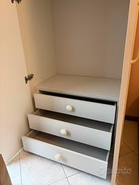 Alto e molto spazioso con tre cassetti all’interno e due sbarre per appendere i vestiti.