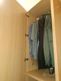 vendo armadio a due ante battenti che si possono dividere in due armadi da un anta singola. armadio in perfette condizioni all interno due cassettiere per ogni blocco da una porta quindi totale di 4 cassettiere. possibilità di consegna e montaggio.