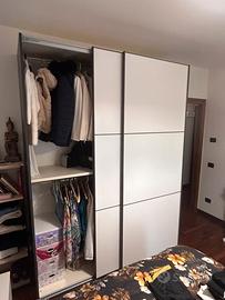 Armadio bianco e grigio con due porte scorrevoli e due mensole, molto comodo e spazioso. Misure: Altezza: 245 cm Lunghezza: 184 cm Larghezza: 62 cm Nuovo, usato per pochi mesi. Vendiamo per trasferimento