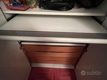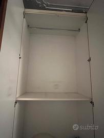 Struttura molto robusta, con interni capienti e ben organizzati (ripiani, cassettiere e portabiti). Gli specchi sono in buone condizioni e rendono l’ambiente più luminoso e visivamente più ampio.