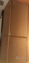 vendo armadio a muro in legno completo di ripiani interni, con ante scorrevoli. togliendo i ripiani è possibile trasformarlo in un'ampia cabina armadio.