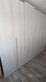 Vendo armadio a muro in buone condizione d'uso accessoriato con cassettiera e ripiani. Colorazione chiara come da foto misure in centimetri 324x246x62 lunghezza x altezza x profondità