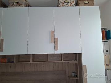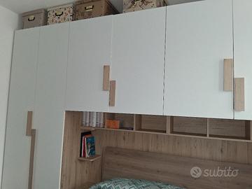 vendo armadio a ponte 7 ante colore quercia naturale/bianco opaco con librerie verticali che si possono usare come ripiani/comodini e libreria orizzontale , dimensioni cm 365x69x250H