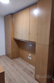 Vendo causa rinnovo stanza, armadio a ponte colore rovere. Misure 3,5m x 2,62m x 0,6m. L'armadio è usato con qualche difetto dovuto all'usura come da foto. L'armadio è smontato. Ritiro in loco a carico dell'acquirente.