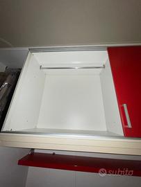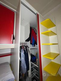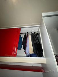 armadio con un anta a 0.45 mt e cassetti con due ante scorrevoli a ponte da 0.90 mt, cabina armadio con anta scorrevole a 0.60 mt. lunghezza intero blocco 4mt x 3mt di altezza