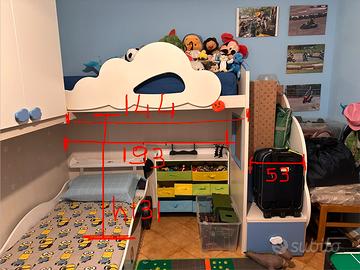 Vemdo armadio a ponte con lettino sospeso per cameretta , 4 anni di vita. Smontaggio e trasporto a carico dell’acquirente Prezzo non trattabile