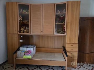 vendiamo armadio con letto a ponte ,con vetrine e cassettiere ,e letto singolo abbinato, in ottimo stato, come foto dimostrano misure : lunghezza 2,9-, altezza 2,60 - profondità 60