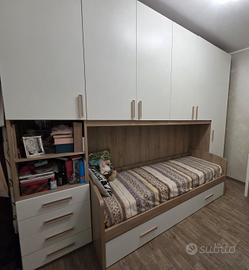 Vendo per cambio arredamento armadio a ponte con letto di cui uno estraibile, in ottime condizioni, dimensioni 294x95x245 circa, colore bianco e rovere chiaro, come nuovo. Materassi non inclusi. Ritiro e smontaggio a carico dell'acquirente.