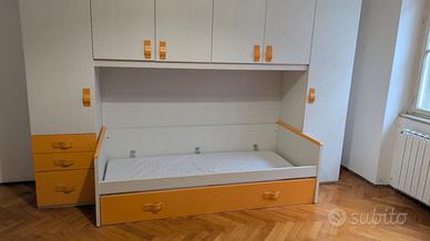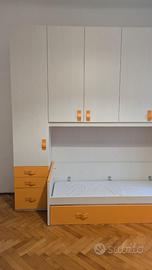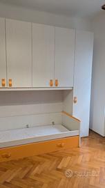 Armadio a ponte in ottime condizioni. Dimensioni: Larghezza 3 metri Altezza 2.60 metri Profondità 0.58 metri ATTENZIONE: Vendo già comodamente smontato, con pezzi e viti ordinatamente conservati. Possibilità di inserire letto matrimoniale, o letto singolo. Disponibile per la vendita anche letto singolo coordinato (vedi foto), con doppio letto di cui uno estraibile. Il materasso e la rete sopra non compaiono in foto ma sono presenti e anche loro in ottime condizioni. Per aggiunta letto con i due materassi chiedo 180 euro (480 in totale). Misure letto Lunghezza 2 metri Profondità 0.9 metri Altezza 0.61 metri Materassi lunghi 1.90.