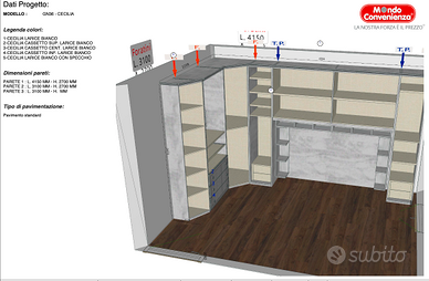 Armadio a ponte e angolare, modello “Cecilia” di Mondo Convenienza, in vendita causa trasloco poichè non riadattabile nella nuova casa. Usato 3 anni, tenuto molto bene. Già smontato e custodito in box, visionabile su appuntamento. Trasporto e montaggio a carico dell’acquirente. Scheda tecnica con dettagli e misure presenti sull'annuncio.