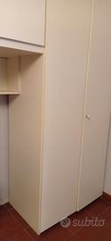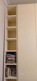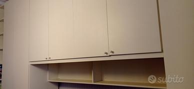 Armadio a ponte di grandi dimensioni in legno color avorio composto da 8 ante, di cui 4 chiudibili con serratura comprensivo di libreria a giorno staccabile larga 35 cm.