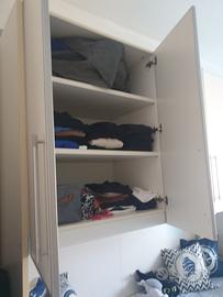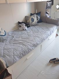 Armadio a ponte in legno bianco con doppio letto ikea Brimes estraibile 2 cassetti