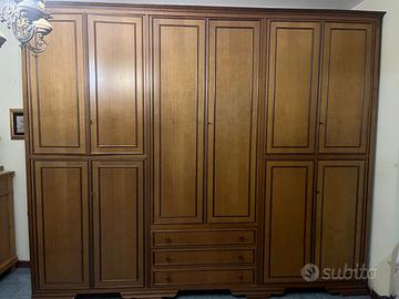 Comodo e spazioso armadio in legno con capienti sportelli per appenderia e cassetti ampi e pratici. Misura larghezza 3 metri, altezza 2,53 metri e profondità 60 centimetri. Smontaggio e ritiro a carico dell’acquirente