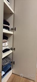 Armadio a specchi e ripiani a vista . Misure : altezza m. 2.30 larghezza m. 2.25 profondità 45 cm . Ottime condizioni . Nessun danno . Ripiani da un lato . Aste appendi abiti dall’altro lato .