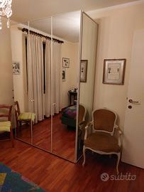 Armadio a specchio 3 ante, 230 cm altezza, 60 cm profondità, 150 cm lunghezza, con 3 cassetti, due ganci appendiabiti e ripiani