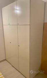Vendo armadio a tre ante di colore bianco, con cassettiera interna (4 cassetti), misure larghezza 150 cm, altezza 225 cm e profondità 60 cm, non in perfette condizioni ma comunque tranquillamente utilizzabile per uso quotidiano.