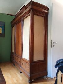 armadio a tre ante elle prima e terza anta possibilità di mettere giacche ecc nell' anta di mezzo ci sono cinque cassetti il mobile e stato pulito e lucidato l estate scorsa