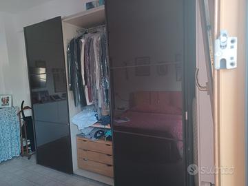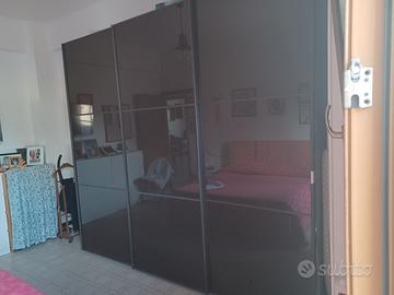 Vendo armadio a 3 ante scorrevoli ,colore marrone , misure largo 270 cm alto 246 cm profondo 60 cm . Completo di cassettiera artigianale . L'armadio si trova ad OSTIA