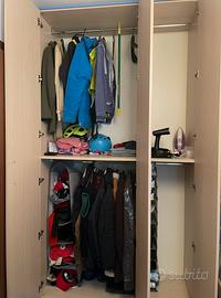 Armadio a tre ante color legno com profili azzurri MISURE larghezza 139,5cm altezza 262 cm profondità 60cm
