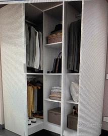 Armadio ad angolo 3 ante, colore bianco come da foto, con ripiani, 90,5Px133Lx184H