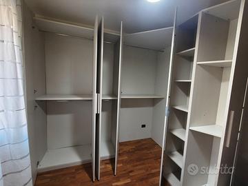 Vendo Armadio ad angolo a 6 ante con cabina. L'armadio ė in perfette condizioni come da foto Misure: cm 270 lato sx x 208 lato dx H 246 Prezzo 450€ A disposizione per chiarimenti , solo realmente interessati.