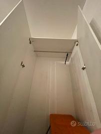 Armadio su misura bianco e rosa per cameretta da bambina. L’armadio è composto da due blocchi scomponibili venduti insieme.