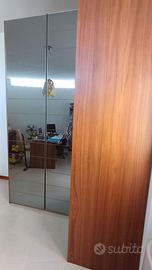 Armadio ad angolo colore noce con ante a specchio e fondo in alluminio come da foto. L'armadio è di ottima fattura , come nuovo.