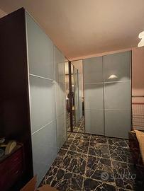 Vendo armadio ad angolo, molto capiente e solido, con ante in vetro satinato e colonna centrale con ante a specchio.