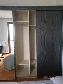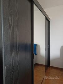 Vendo armadio scorrevole ,in legno nero e specchio centrale, con tre vani portabiti e sei mensole, in buonissimo stato. Altezza m 2.20 , lunghezza m 2,50 e profondità m 0,65 . Euro 50 (non trattabile xhe' in ottimo stato)