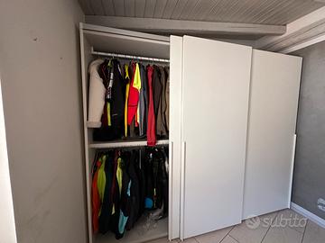 Vendo Armadio ad ante scorrevoli molto robusto con misure: 240x300x60 (AxLxP) Appenderie sul lato destro e sinistro, nella parte centrale appenderia in alto mentre in basso un ripiano e 2 cassetti
