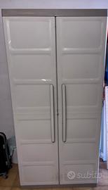Vendo armadio alto marca Keter, modello XL, interamente composto da piani regolabili, ideale per garage, cantine, ripostigli o lavanderie. Struttura robusta in resina, resistente all’umidità e facile da pulire. L’armadio è in ottime condizioni.