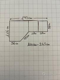 Vendo bellissimo armadio angolare con cabina, questo spazio si può anche utilizzare inserendo all'interno una cassettiera. Al momento all'interno sono presenti due appendiabiti e uno specchio. Le altre due ante sono costituite da mensole con vari ripiani. Nell'ultima foto trovate le misure precise di tutto il mobile. per qualsiasi info contattatemi. Non è un mobile IKEA o Mondo Convenienza era stato realizzato su misura e i materiali sono di alta qualità.