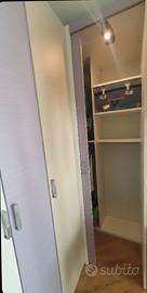 Vendo bellissimo armadio a colonna angolare con Cabina ideale per camerette o stanze dei ragazzi, caratterizzato da un design moderno e una grande capacità contenitiva in poco spazio. L'armadio è composto da più moduli con ante battenti in tre colori coordinati :