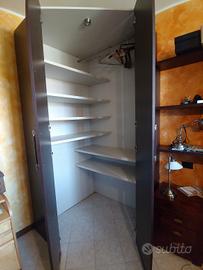 vendo armadio guardaroba color wenge' molto spazioso, con molti ripiani il mobile è già smontato in ottime condizioni ritiro a mano Misure: 120×120cm, profondità 60 altezza 250cm