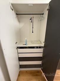 Vendo armadio angolare IKEA con ante alternate bianche e grigie, acquistato a novembre 2023. Condizioni pari al nuovo.